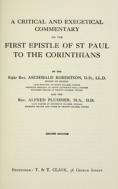 Robertson Archibald, Plummer Alfred A critical and exegetical commentary on the First epistle of St. Paul to the Corinthians 2nd ed. New York : Scribner 1916