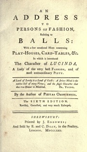 Title: An address to persons of fashion : relating to balls; with a few occasional hints concerning play-houses, card-tables, &c., in which is introduced the character of Lucinda ...