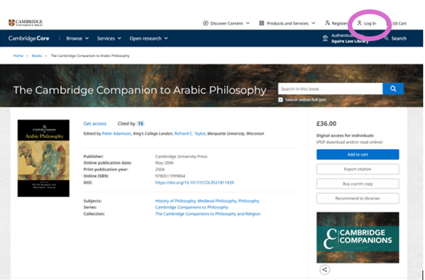 Logging into the Cambridge Core